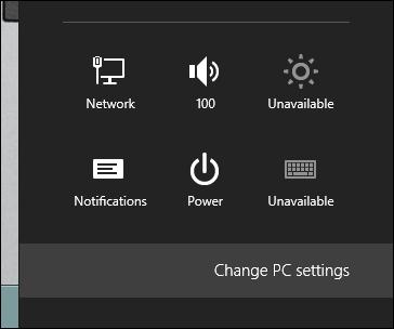 ابتدا کلیدهای ترکیبی Win + I را فشار دهید و از منوی باز شده در سمت راست صفحه، Change PC Settings را انتخاب کنید.