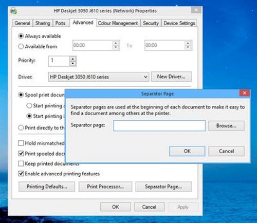 برای مثال در پرینترهای HP شما با دو بار کلیک بر روی پرینتر و دو بار کلیک بر روی Customise میتوانید به بخش تنظیمات پیشرفته Advanced بروید. در این بخش باید دکمه اختصاصی Separator Page را ببینید و در نهایت شروع به تنظیم آن کنید.
