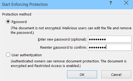 در پایان باید روی دکمه Yes Start Enforcing … در پایین بخش Start enforcement کلیک کرده و گذرواژه خود را برای محافظت از این فایل مستند وارد کنید.